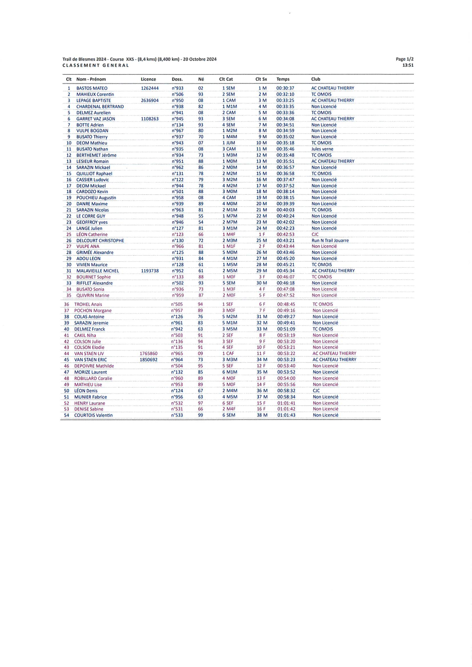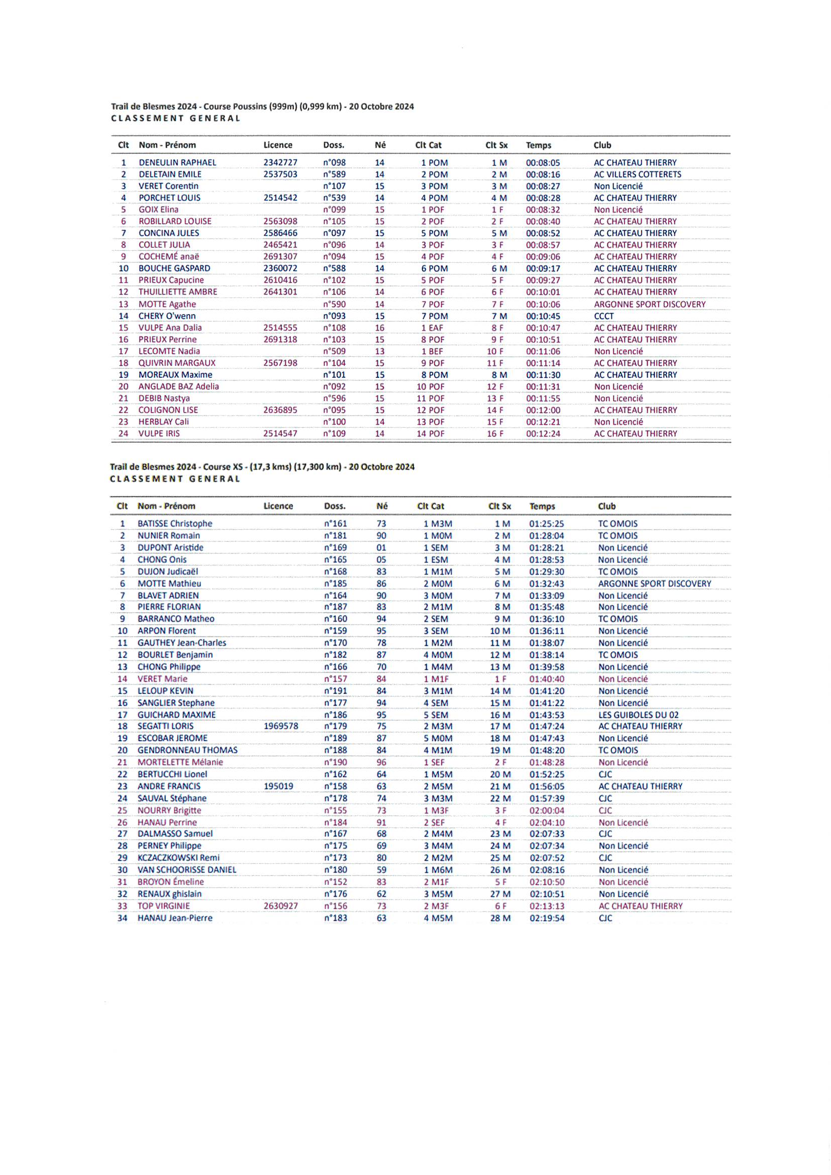 34 traileurs sur le 17,3 km, 54 sur le 8,4 km, 16 marcheurs sur le 8,4 km et 70 jeunes ont participé aux différentes épreuves.