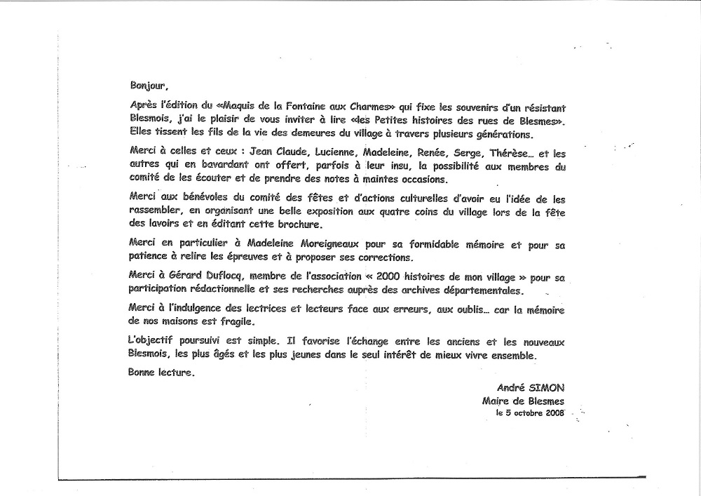j’ai le plaisir de vous inviter à lire « les Petites histoires des rues de Blesmes ».