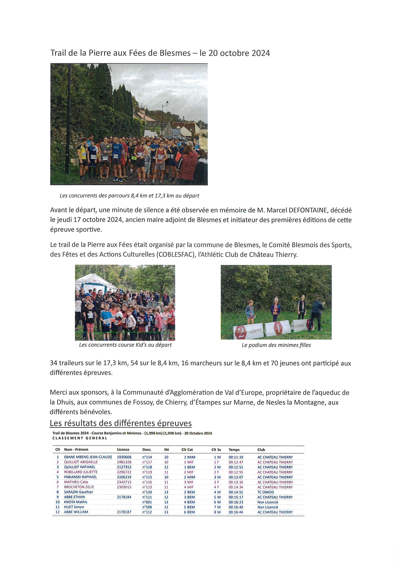 Le trail de la Pierre aux Fées était organisé par la commune de Blesmes, le Comité Blesmois des Sports, des Fêtes et des Actions Culturelles (COBLESFAC), l’Athlétic Club de Château Thierry.